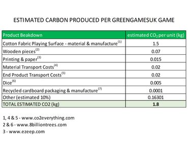 This more than offsets the small amount of carbon used in the production and transport of the materials used in our games which we estimate to be around 1.8kg of carbon dioxide per game.